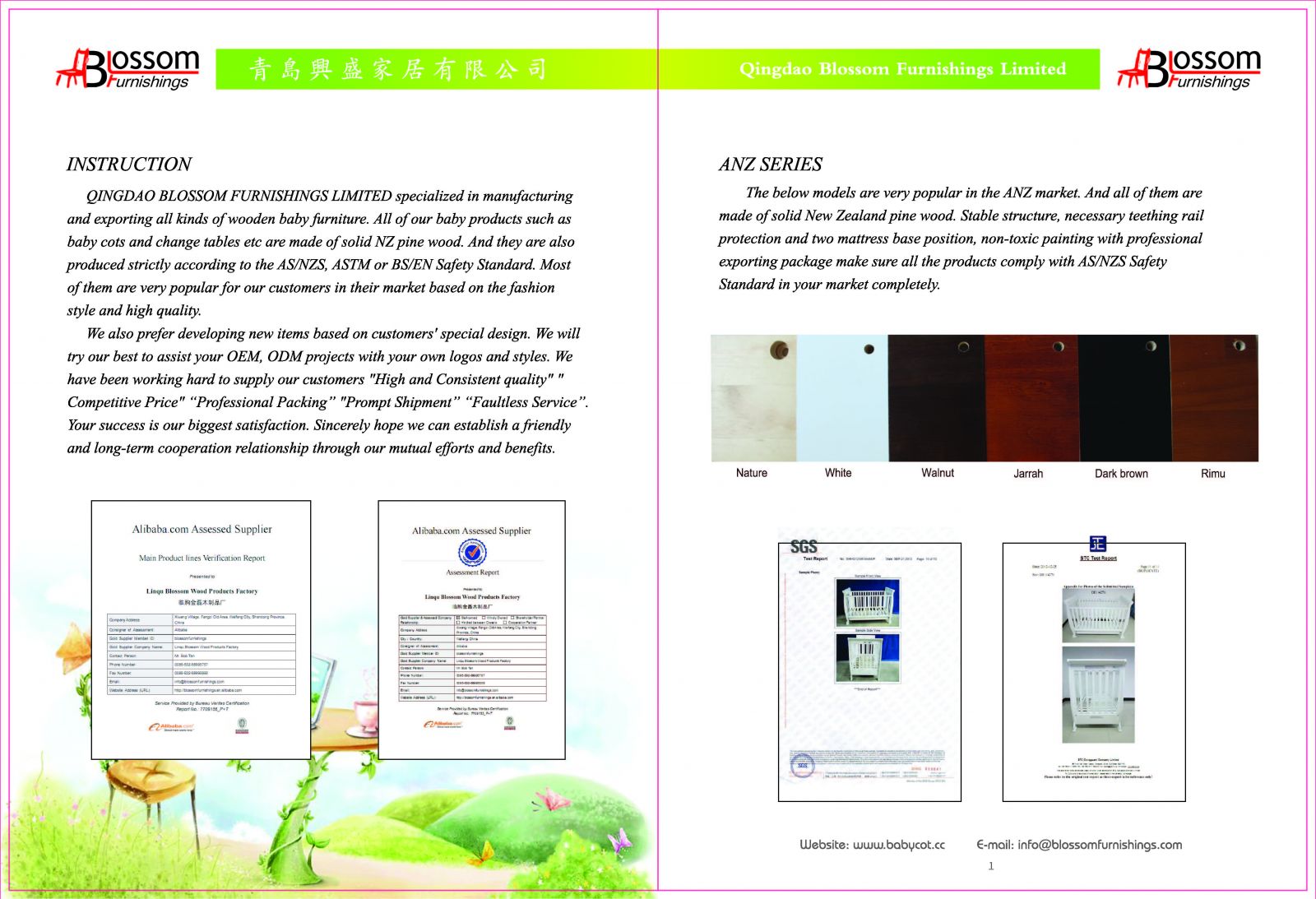 We are professional furniture manufacturer named Qingdao blossom furnishings limited.The company is established in 2006.We have our own factory which covers an area of 60000 m².It is one of the most biggest furniture factories majoring in making all kinds of wooden baby furniture in Qingdao.We have office in the center of Qingdao city for customer documents and sales team, we attend CANTON FAIR ( China export and import fair) and show our wooden baby cribs there, and we have showroom on alibaba.com and other B2B websites.